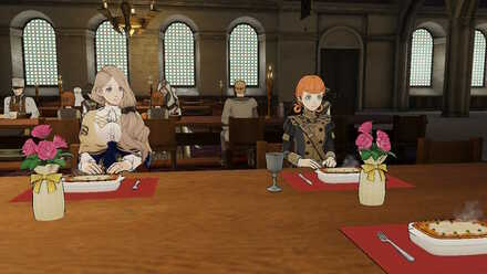 Sharing a repast with two other characters in the dining hall allows you to build a bond between the three of yous. The outset meal is always free, any meals after this cost ingredients from your own inventory. One meal takes upward one (one) activity point, and y'all cannot eat with any grapheme more than than once even if you have extra activeness points and ingredients for a meal.